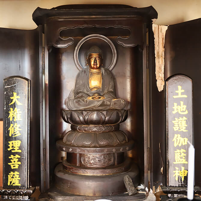 本尊の傍らに祀られる薬師如来像。